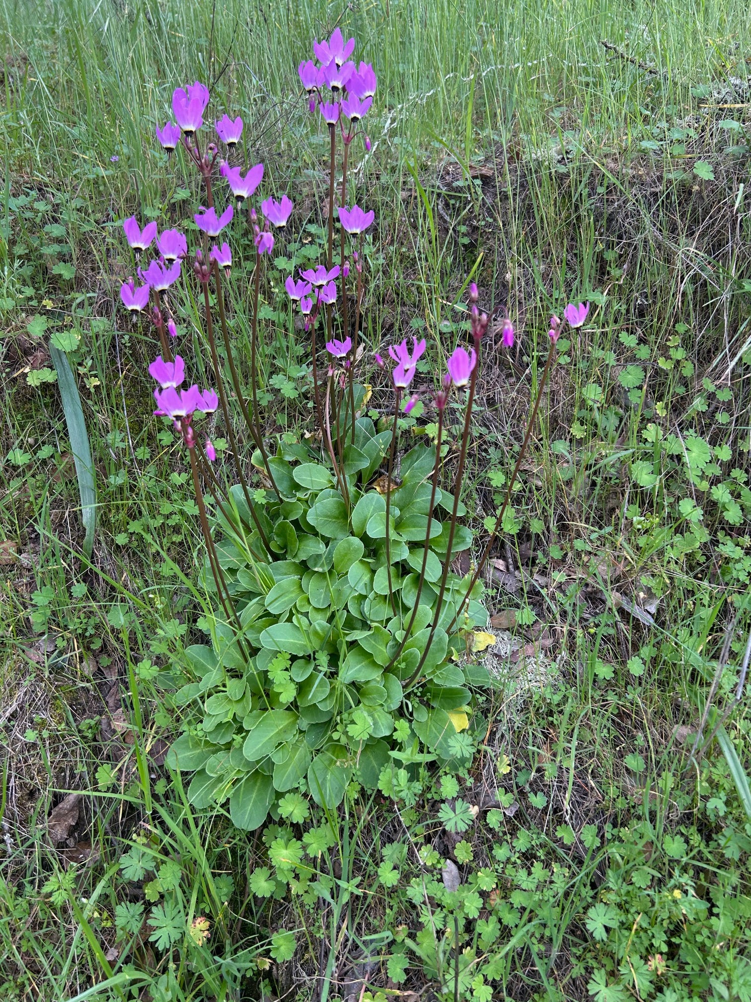 Henderson’s shooting stars (Primula hendersonii) now blooming all over shaded sections of the property.
